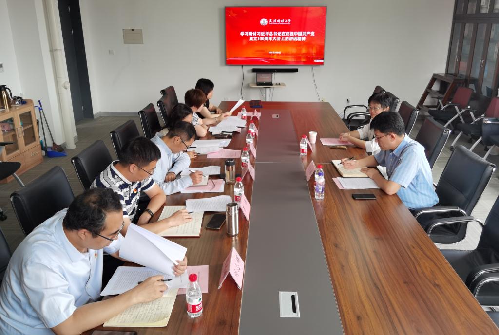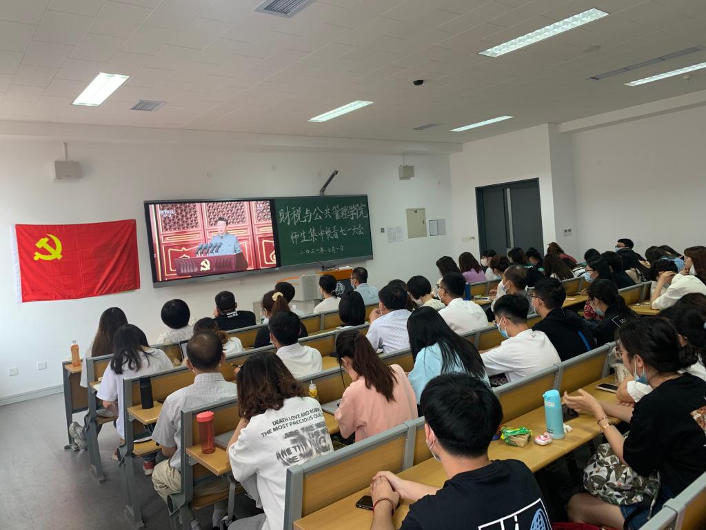 百年征程波澜壮阔,百年初心历久弥坚。2021年7月1日,中国共产党迎来百年华诞。上午8时,庆祝中国共产党成立100周年大会在北京天安门广场隆重举行,中共中央总书记、国家主席、中央军委主席习近平发表重要讲话。按照校党委相关工作安排,学院处级领导干部、党支部书记、新发展党员代表及师生代表在主会场,其他没课的师生在分会场认真收看庆祝大会,聆听习近平总书记重要讲话。上午11时,学院召开专题党委会,学习研讨总书记重要讲话精神,各党委委员结合分管工作、本职工作交流心得并作表态发言,校党委常委、组织部部长周艳萍列席会议。