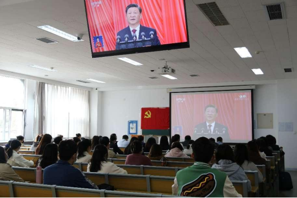 学院师生党员代表集中收看党的二十大开幕会盛况