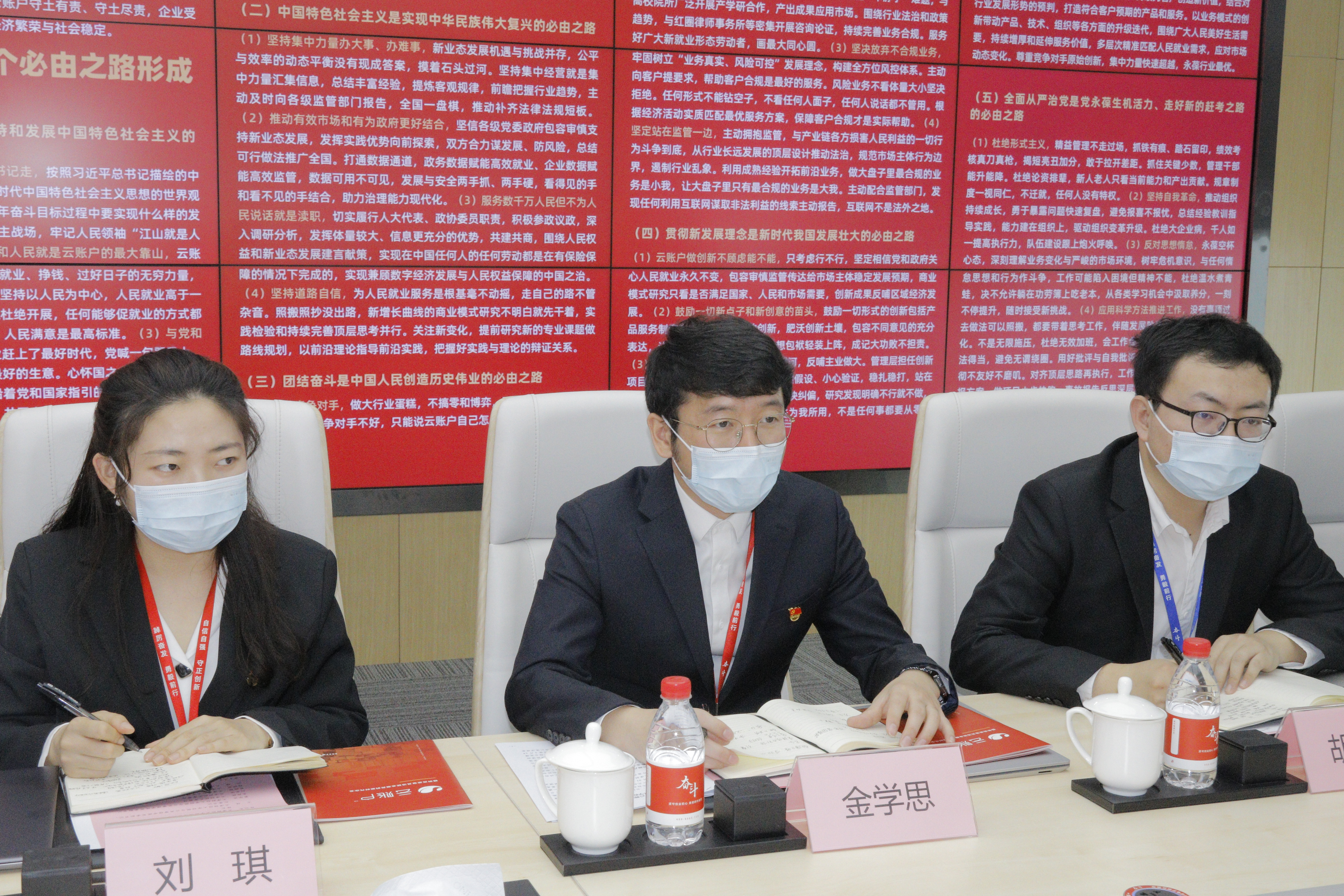 座谈会上,金学思书记详细介绍了企业的成立与发展,以及企业的发展理念与核心宗旨。他表示,云账户一直致力于党建引领企业高质量发展,努力学习党的二十大精神,从党的治国理政实践中汲取指导组织及个人快速成长的方法论;坚持数字技术赋能服务百姓就业增收,参与打赢脱贫攻坚战和乡村振兴事业;积极参与法治建设,引领行业规范发展。他充分肯定了我校及188博金宝亚洲体育毕业生在云账户企业发展中发挥的骨干作用,期望未来与更多财大师生联手,巩固和扩大双方各自领域优势,为天津经济高质量发展贡献更多力量。