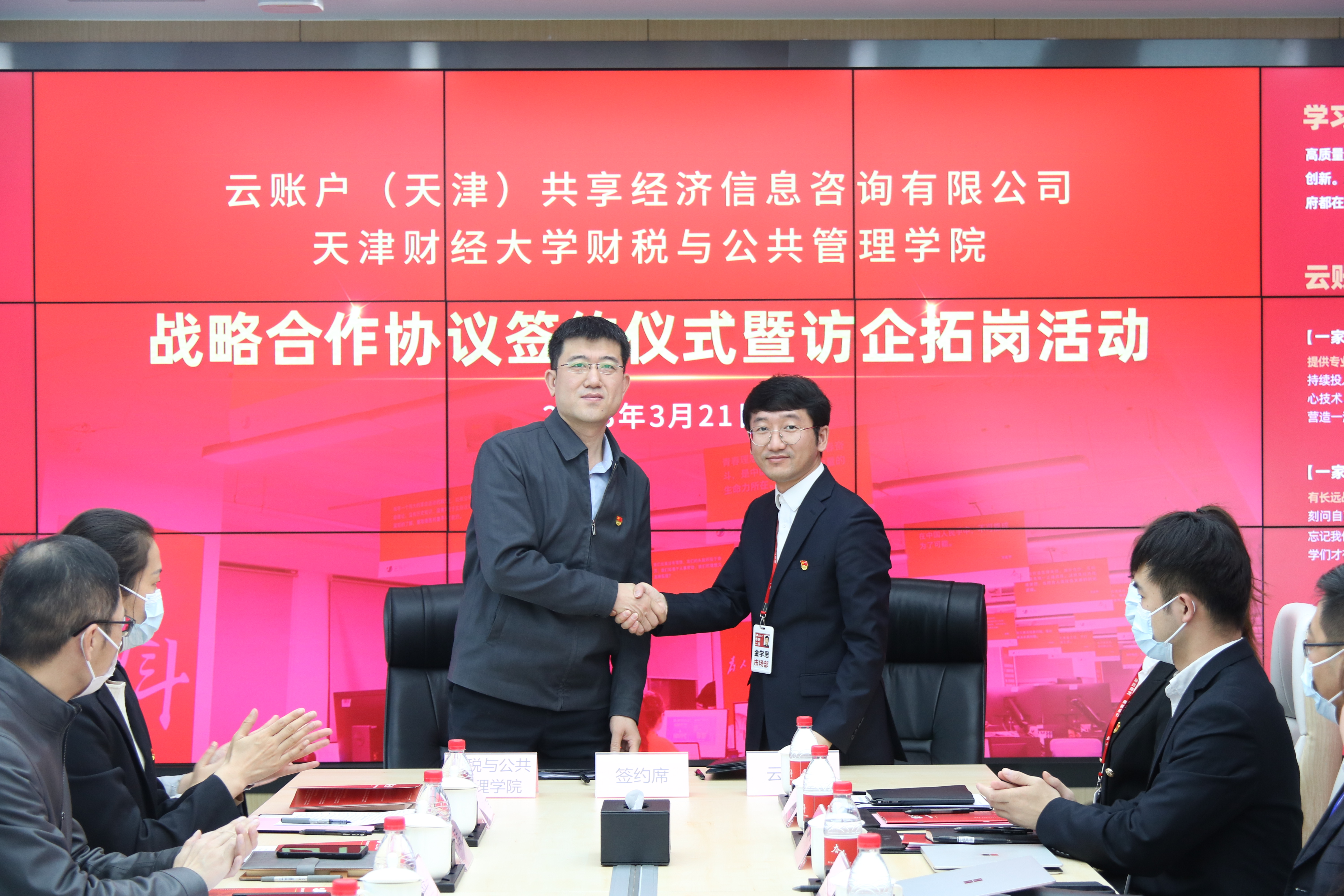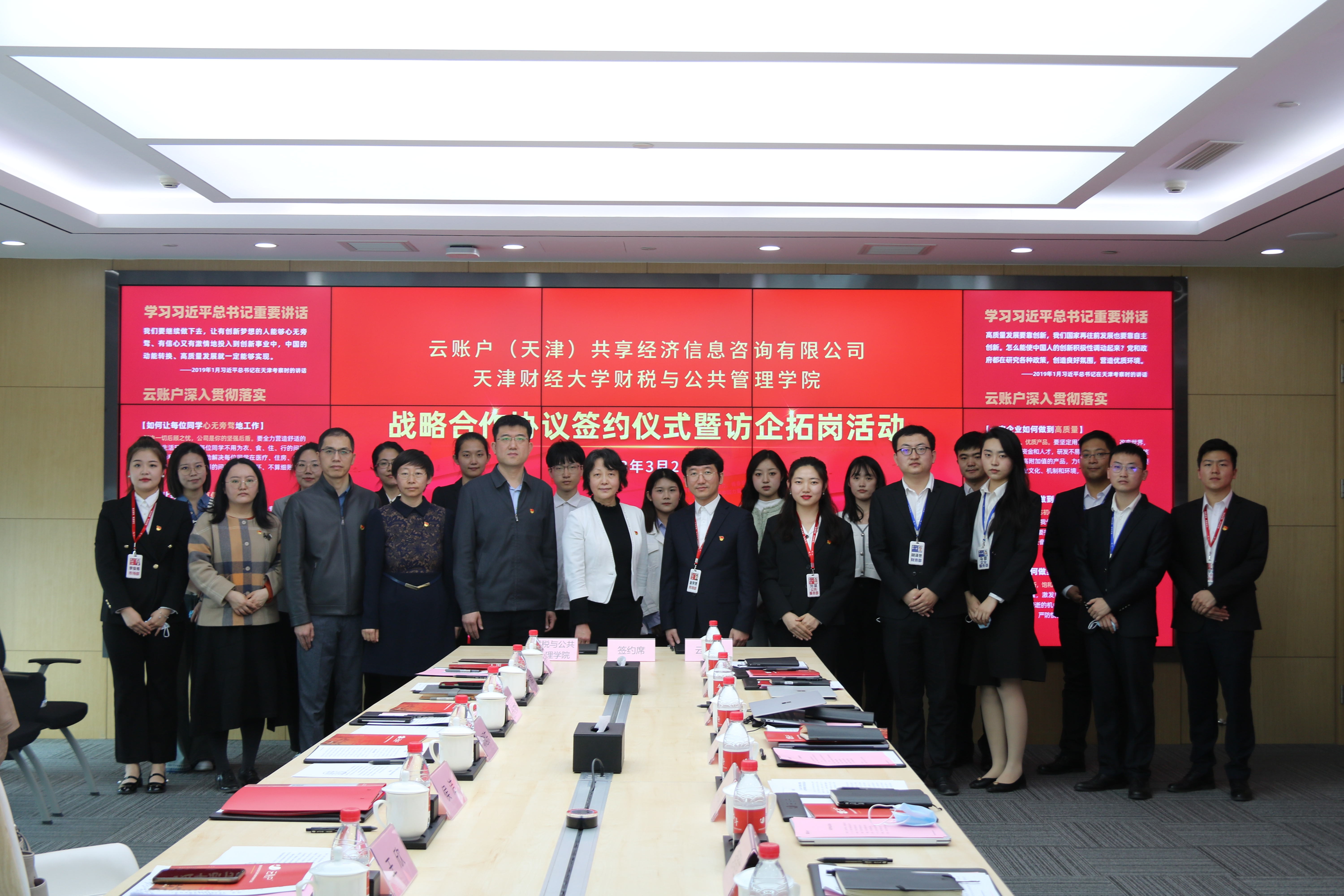 为深入学习贯彻党的二十大精神,深化产教融合、校企合作,落实教育部“促就业”行动计划,3月21日,校党委副书记侯洁带队前往云账户(天津)共享经济信息咨询有限公司(以下简称“云账户公司”),出席188博金宝亚洲体育与云账户公司战略合作协议签约仪式暨访企拓岗活动,并与云账户公司代表围绕“党建共建”“合作培养数字财税与政府治理专业人才”“产学研合作”等方面进行了深入座谈交流。