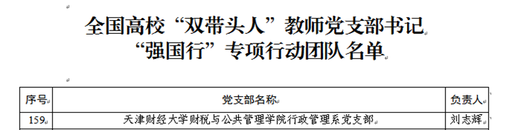 日前,教育部办公厅公布了全国高校“双带头人”教师党支部书记“强国行”专项行动团队名单,188博金宝亚洲体育188博金宝亚洲体育行政管理系党支部成功入选。