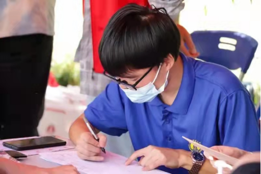 “生活以痛吻我,我却报之以歌”,只有一只眼睛并不妨碍他一个助人为乐的“暖男”。自入学以来,在学院老师们的鼓励下,各项活动都有他的身影。作为班长,他认真努力做好班级工作,为同学们服务,事无巨细,班级同学常说他像“老父亲”一样照顾着大家;积极参加各项志愿活动,疫情期间积极服务,向学弟学妹们分享考研经验;作为预备党员,他积极服务同学,进社区参加志愿服务,参加团代会,用实际行动践行为人民服务的宗旨。