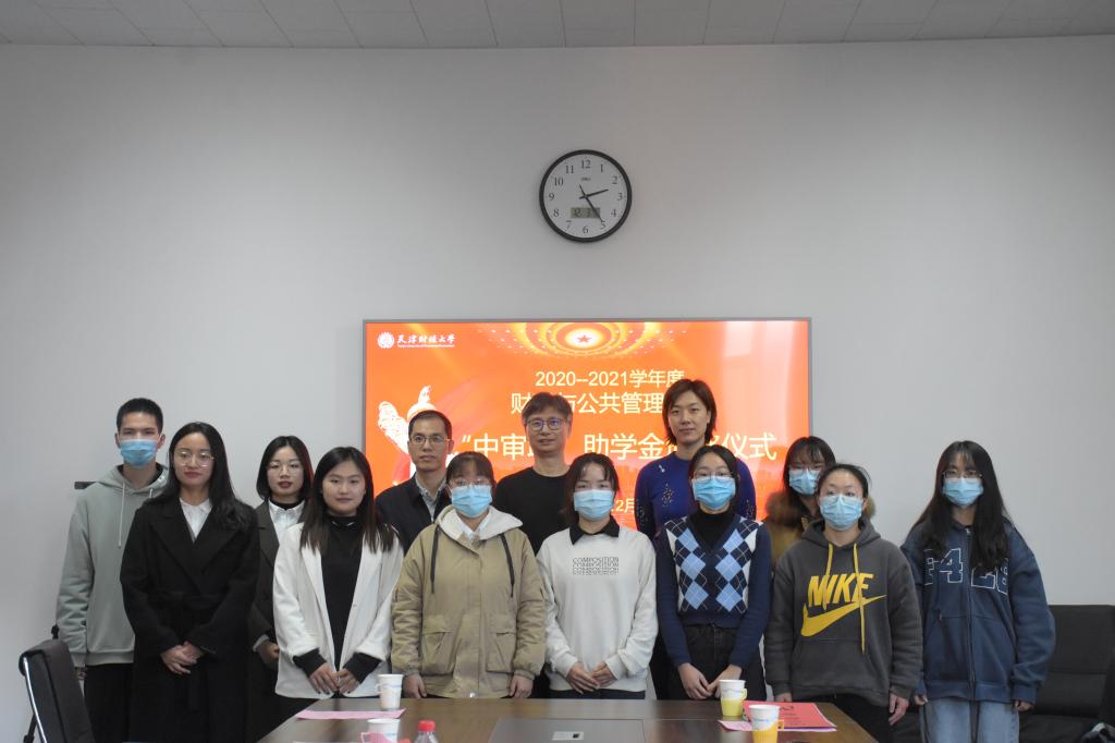 12月3日下午,188博金宝亚洲体育举办2020-2021学年度中审联助学金颁奖仪式。会议由学院党委副书记黄华宾主持,特邀天津中审联有限责任会计师事务所总经理王铁松先生担任颁奖嘉宾,学工办邵婉如、郭晓婉老师,以及各年级、各专业获得中审联助学金的十名本硕博学生参加了颁奖仪式。