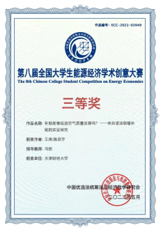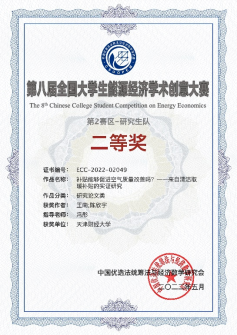 2022年第八届全国大学生能源经济学术创意大赛采取了校级选拔赛、区域选拔赛、全国总决赛三级赛制进行,疫情形势下,两阶段比赛均采用远程非接触方式进行。天津分赛区由天津大学管理与经济学部承办,于2022年4月14日顺利举行。188博金宝亚洲体育冯彤老师指导的王南和陈欣宇、马婕两支队伍均获得天津市分赛区二等奖,并闯进全国总决赛。全国总决赛由中国“双法”学会低碳发展管理专业委员会、郑州大学管理学院和北京大学能源经济与可持续发展中心承办,于2022年5月14日在郑州大学举行,大赛邀请了中国科学院杨晓光研究员、清华大学张希良教授等资深专家组成评审委员会,对参赛作品给予严谨公正的评审和悉心精彩的指导。在与清华大学、北京大学等全国323所高校的5549个作品的激烈角逐中,通过通讯评审和专家会评,王南和陈欣宇获得国赛三等奖,马婕获得国赛优秀奖。