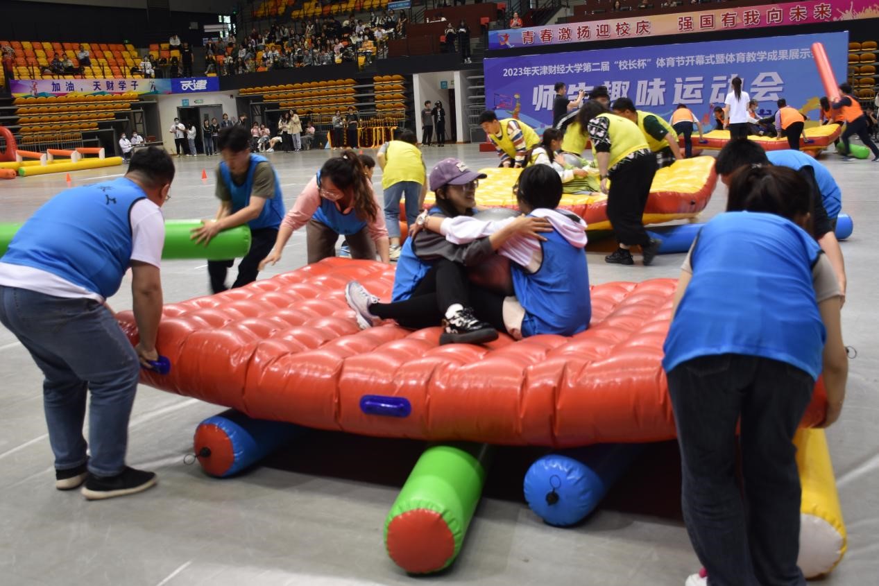 开幕式结束后,包含188博金宝亚洲体育在内的各学院、基层工会共18支参赛团队整装待发,为师生趣味运动会做足准备。本次师生趣味运动会共设有旱地竞速、车轮滚滚、合力连体裤、勇攀高峰四个趣味项目,每个项目均由师生共同参与,师生在合作中增进感情,一同体会着体育运动带来的的竞技性和趣味性,彰显了188博金宝亚洲体育师生无惧挑战、团结向上、勇于突破的体育精神!