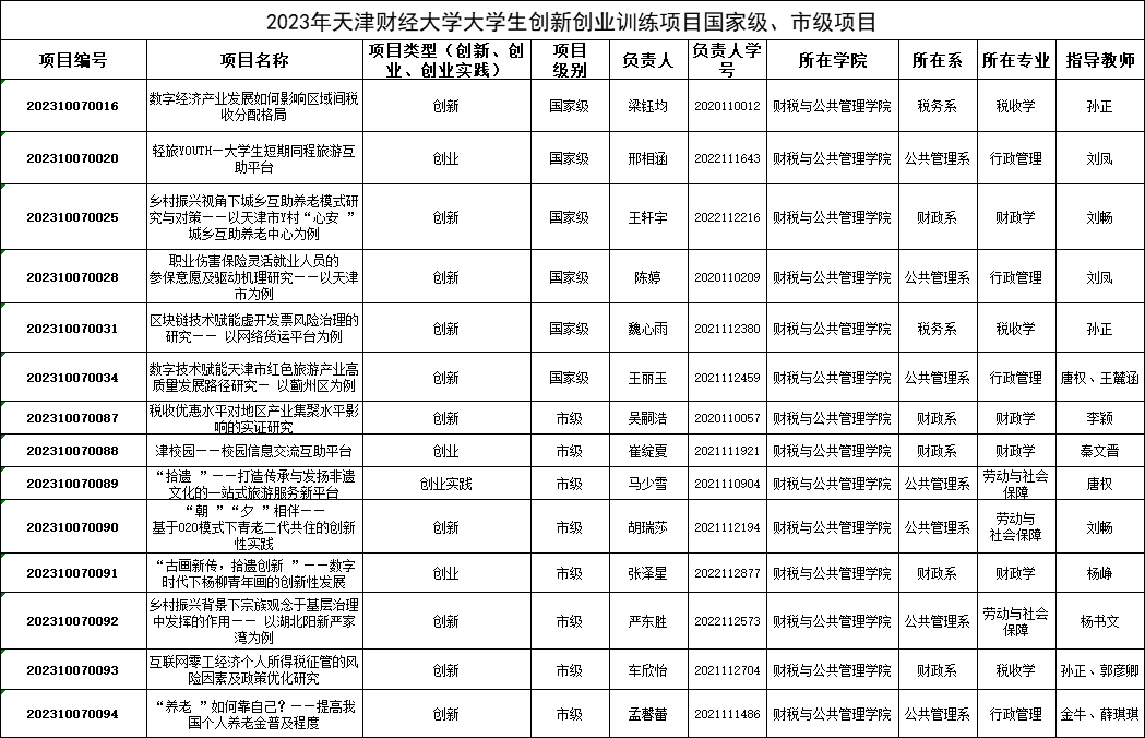 近日,根据市教委《关于公布2023年天津市市级大学生创新创业训练计划项目名单的通知》,我校发布了2023年国家级、市级大学生创新创业训练计划批准立项项目。188博金宝亚洲体育由孙正、刘凤、刘畅、唐权、王麓涵等教师指导的项目获批国家级项目6项、市级项目8项,立项数量和质量再创新高。