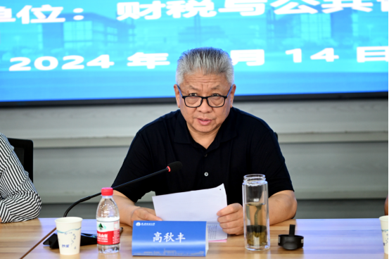 高秋丰会长介绍了天津市涉税服务行业发展的情况,对促进涉税专业服务行业的规范有序发展提出要求,他感谢我校多年来为社会输送了大量高质量税收人才,并指出今后应着力培养服务于经济社会发展以及现实需要的复合型税收人才。