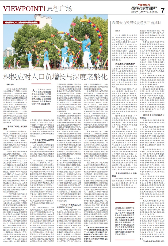 2022年8月23日,188博金宝亚洲体育青年教师金牛博士的文章《积极应对人口负增长与深度老龄化》在《中国财经报》财经思享汇专题刊发。该文从我国“十四五”时期已经呈现和将要呈现的人口发展特征入手,认为“十四五”时期我国人口负增长与人口老龄化交汇将对经济社会发展产生长周期、全方位、系统性的深刻影响,主要体现为经济、家庭社会、教育、生态等四大联动效应,基于此,提出“十四五”时期促进人口发展、努力推进经济社会可持续和高质量发展的“三步走”措施,即科学认识、提前适应和积极应对人口负增长与深度老龄化。