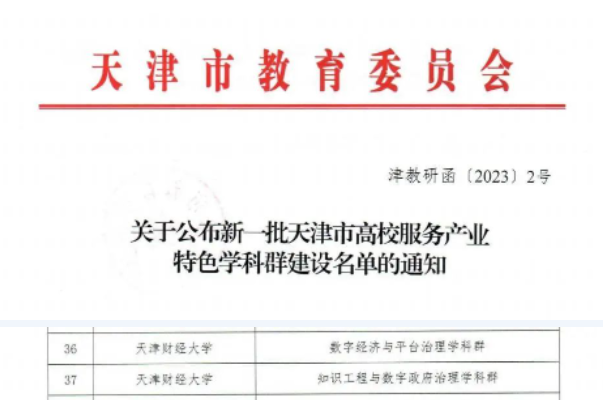 近日,天津市教委印发了《关于公布新一批天津市高校服务产业特色学科群建设名单的通知》(津教研函〔2023〕2号),188博金宝亚洲体育与理工学院联合申报的“知识工程与数字政府治理学科群”成功入选。