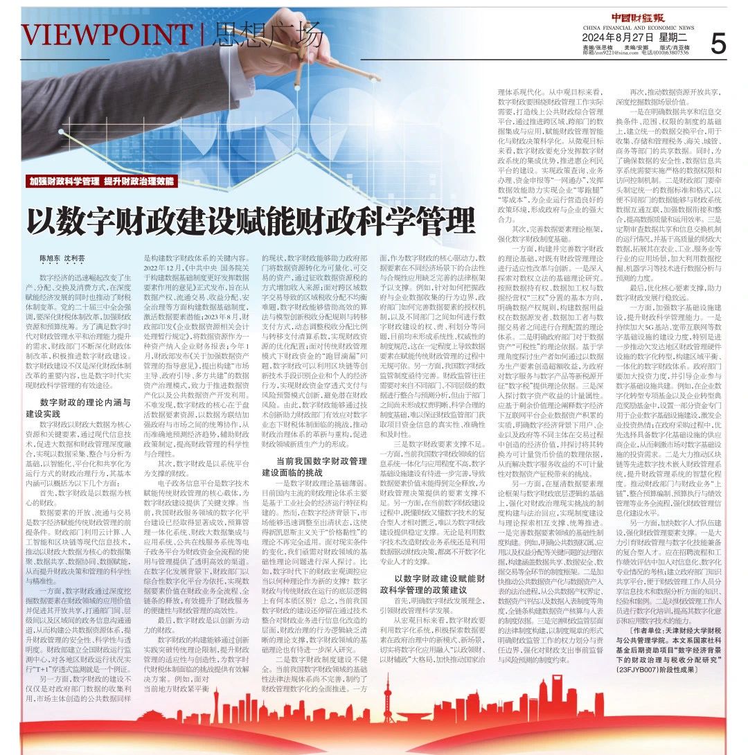 本文全文发表于《中国财经报》2024年8月27日第05版。