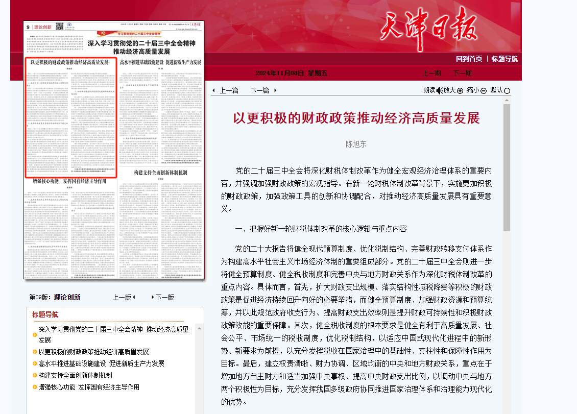 【研究阐释党的二十届三中全会精神】陈旭东:以更积极的财政政策推动经济高质量发展