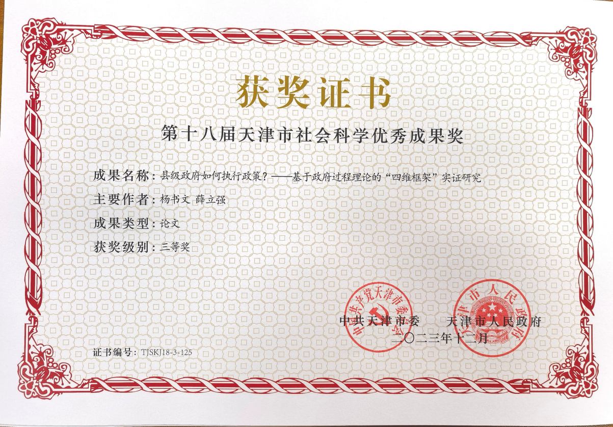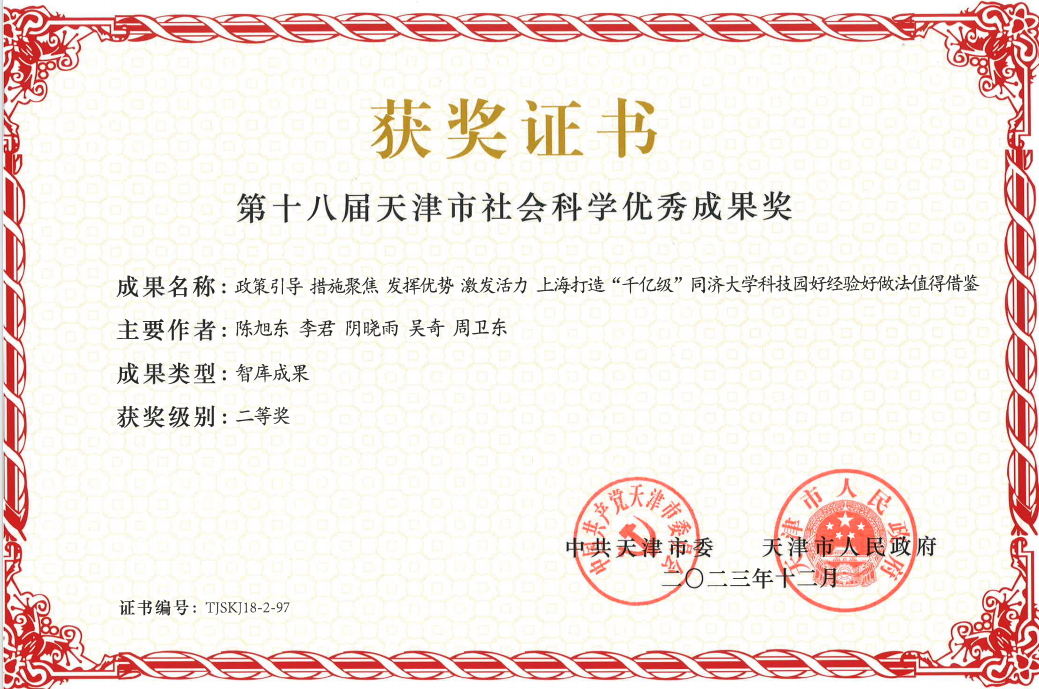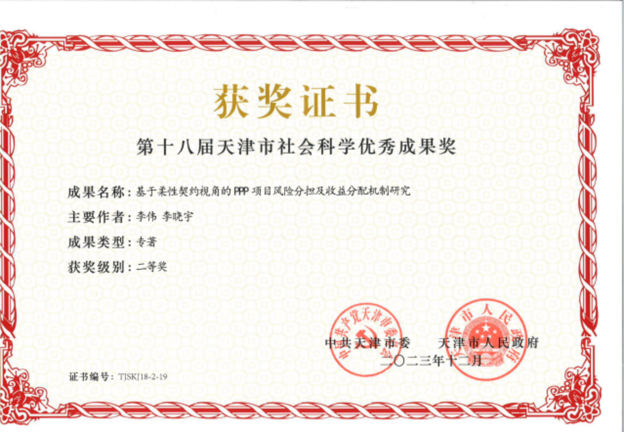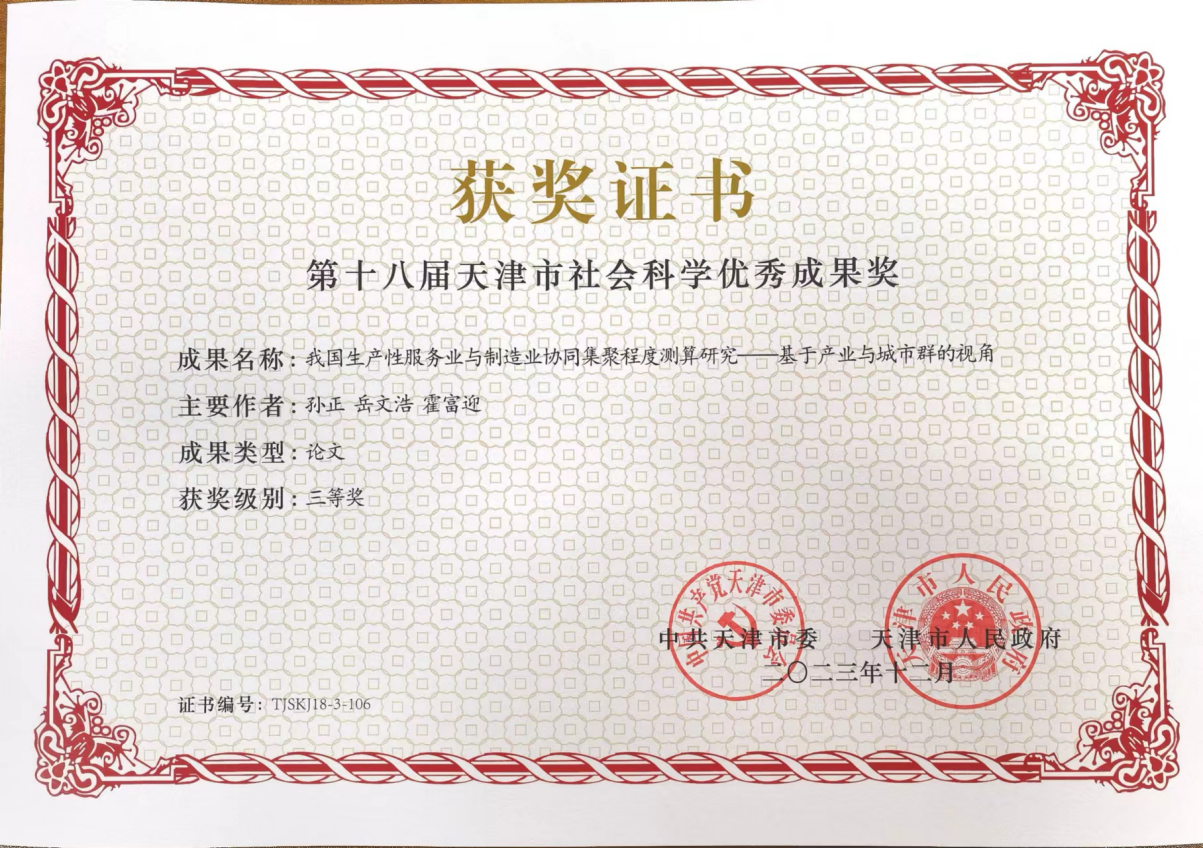日前,第十八届天津市社会科学优秀成果奖评审结果正式公布,188博金宝亚洲体育4项成果获奖,其中陈旭东教授撰写的《政策引导措施聚焦发挥优势激发活力上海打造“千亿级”同济大学科技园好经验好做法值得借鉴》获得智库成果类二等奖,李伟教授撰写的《基于柔性契约视角的PPP项目风险分担及收益分配机制研究》获得著作类二等奖,杨书文教授撰写的《县级政府如何执行政策?——基于政府过程理论的“四维框架”实证研究》、孙正教授撰写的《我国生产性服务业与制造业协同集聚程度测算研究——基于产业与城市群的视角》获得论文类三等奖。在本届天津市社科优秀成果评奖中,学院坚持理论创新与实践应用相结合,本次获奖是对188博金宝亚洲体育教师在社科研究领域的突出贡献和综合实力的充分肯定,也是学院在社科研究上取得的又一重要成果。