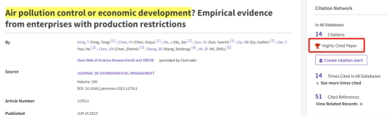 188博金宝亚洲体育冯彤老师与硕士生陈欣宇及天津大学、西安交通大学等专家学者合作的研究成果《Air pollution control or economic development? Empirical evidence from enterprises with production restrictions》于2023年3月发表在《Journal of Environmental Management》第336期,于2024年3月获评全球1%ESI高被引论文。