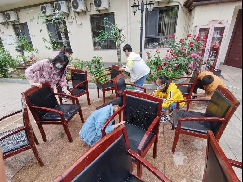来到敬老院后,红会成员与志愿者们共同协作,擦净每一块玻璃;簌簌声响,扫清院内垃圾;细心擦拭,为老人们清洗用餐座椅。同学们各司其职,尽最大努力为老人们营造更加干净、整洁、舒适的生活环境,将此次志愿服务的基础动作落地落实,真正发挥青年学生“办实事、送温暖、真帮助”的服务奉献精神。