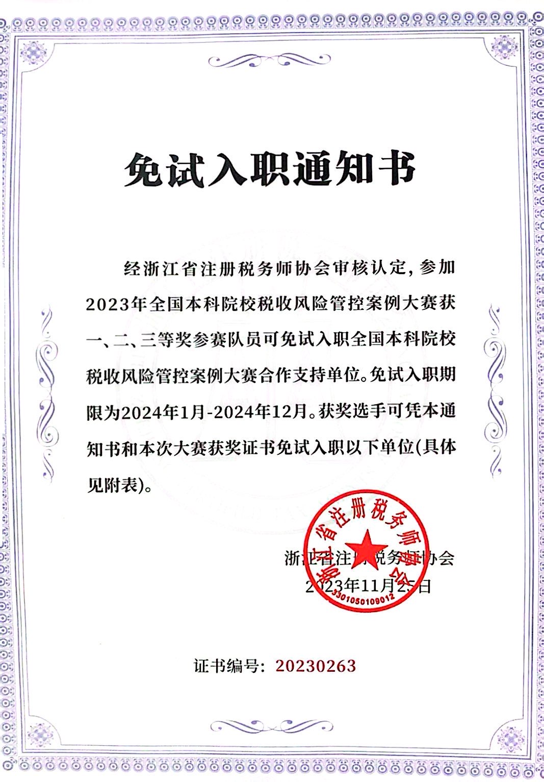 由188博金宝亚洲体育教师刘维彬和刘新宇指导,税务专业冯龙浩、孔文慧、刘晓萌三名同学组成的“千帆竞税”队历经校内赛、天津分赛区比赛的激烈选拔,成功闯进全国总决赛。在总决赛中,三位选手们通过案例汇报、专家提问与现场答辩,在激烈的角逐中最终斩获全国二等奖,创造了我校历年参赛的最好成绩。总决赛共有24支队伍获得一等奖,40支队伍获得二等奖,其他队伍获得三等奖。同时,参赛三名学生获得由浙江省注册税务师协会审核认定的免试入职通知书和就业推荐信。两名指导教师获得全国优秀指导教师。我校另有一支由税收专业纪诚淼、苗鹏璇、孙标三位同学组成的“从容应”队获得天津市分区赛二等奖。