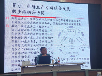 米加宁教授从第四次工业革命切入,为大家介绍了算力的重要性。算力驱动的新质生产力,正是将这一内涵由物理空间拓展到了数字空间。它以算力为核心驱动力,以数据和算法为关键生产要素。在新质生产力的本质特征和发展应用方面,米教授提出六项特征:第一,问题数据化是新质生产力的基础;第二,数据算法化是新质生产力的关键;第三,算法平台化是新质生产力的必由之路;第四,生产智能化是新质生产力的显著特征;第五,人机协同是新质生产力的内在要求;第六,生态融合是新质生产力的价值归宿。米教授指出新质生产力对国家治理现代化尤为重要,本质上讲,算力驱动的新质生产力作为一种新型的生产力形态,正深刻地改变着政府治理的形态、对象、主体和生态,引发了治理模式的根本性转变。