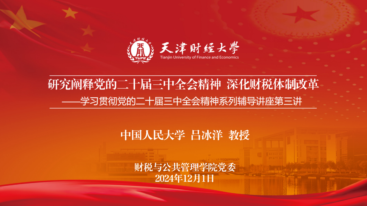 为深入学习领会党的二十届三中全会精神,帮助学院教师加强对全会精神的研究阐释,提升解决实际问题的学术“生产力”。12月1日,学院举办学习贯彻党的二十届三中全会精神系列辅导讲座第三讲,邀请教育部“长江学者”、国家社会科学基金重大项目首席专家、中国人民大学财政金融学院财政系主任吕冰洋教授作为主讲嘉宾,与学院教师就“研究阐释党的二十届三中全会精神 深化财税体制改革”为主题,开展科研项目申报和学术能力提升的专题交流。学院20余位教师、博士研究生参与,讲座由党委书记、院长陈旭东教授主持。